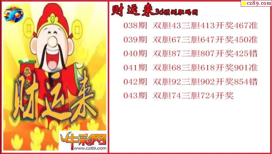 > 26年043期3d 财运来预测胆码图